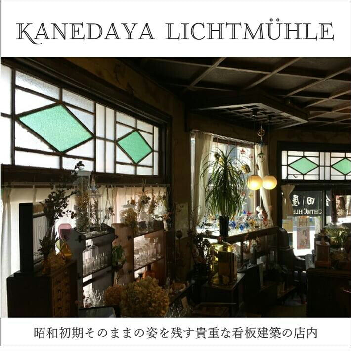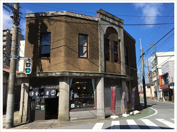 金田屋は、木更津線が活躍していた頃の江戸時代から続く当家の屋号で、主に薬を商っておりました。明治時代後期には本店の向かい側に洋品雑貨部として「金田屋用品店」を開業しご婦人向けの輸入ファション雑貨を商いました。その後、昭和7年に建て直されたのが現在の建物です。洋風なデザインを取り入れた外観や幾何学模様の色ガラス装飾など、昭和初期の姿を今に残す、木更津を代表する貴重な看板建築のひとつとなっています。すぐ近くには狸囃子(たぬきばやし)で有名な證誠寺もあります。