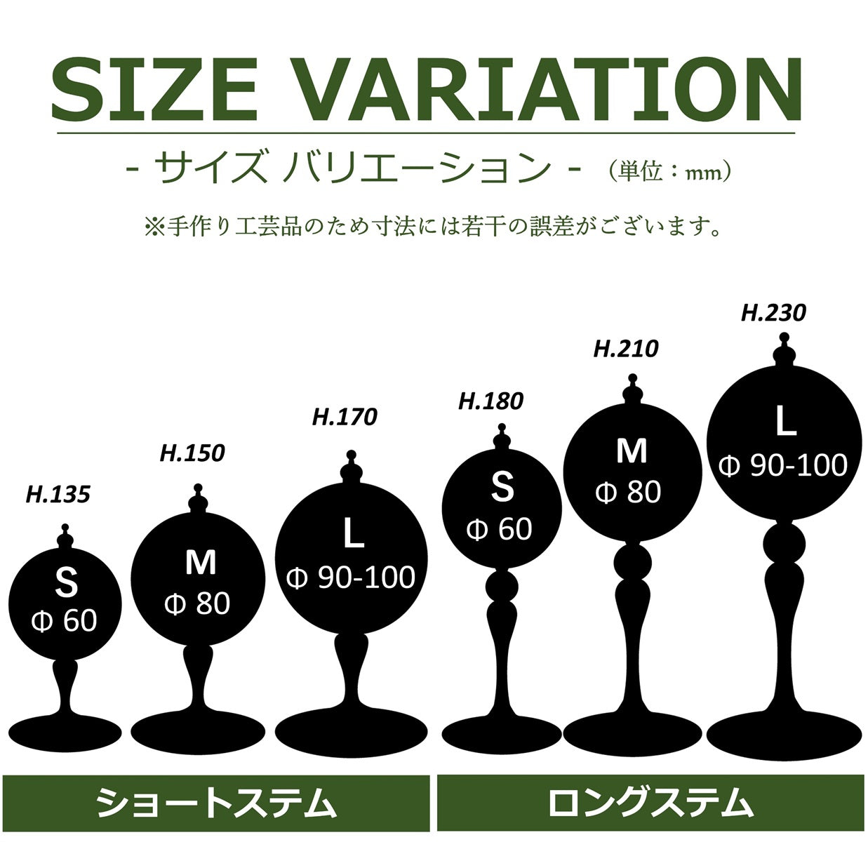 最もシンプルで飽きのこないリヒトミューレを代表するスタンダードモデルです。球の大きさはS・M・Lの3種類、脚の長さはショートステム/ロングステムの2種類、カラーはクリアを含めて全6色。