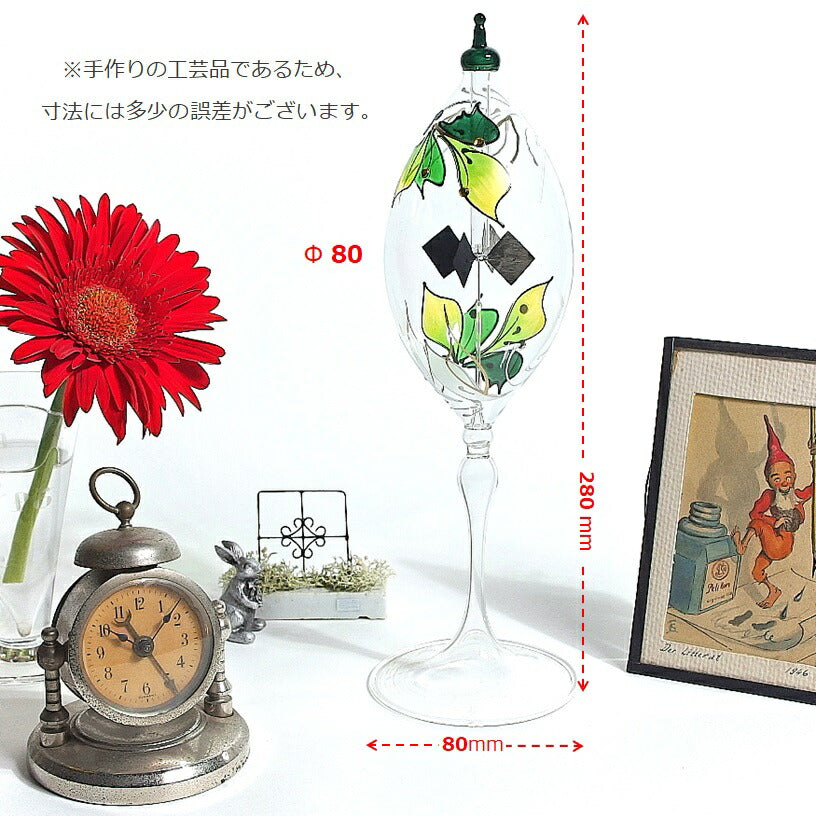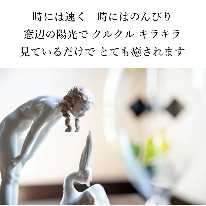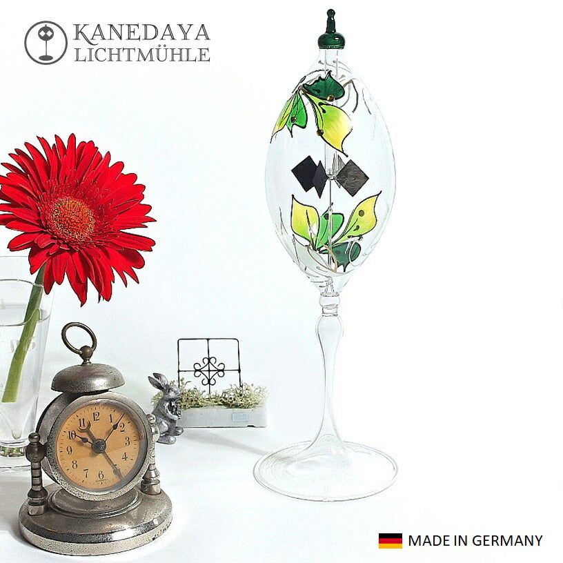 回転のスピードは、ヒカリの種類や強さによって変化します。LED、蛍光灯、遮熱処理が施されたガラス窓からの太陽光では回らないことがあります。手作りであるため、大きさや形、色合い、気泡の入り方、回転の速さなどに個体差があります。作業工程ではガラスに気泡や小さな窯傷やザラつきが入ることがあります。また、羽を黒くするために付けられた煤(すす)が剥がれ落ちたり、塵(ちり)となってガラスの内側に付着することがあります。日常的に高速回転が続く環境下で使用すると回転しなくなることがあります。これらの現象は不良ではなく、製品それぞれの個性や特性としてご理解ください。